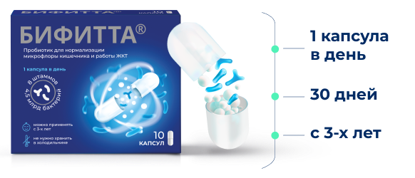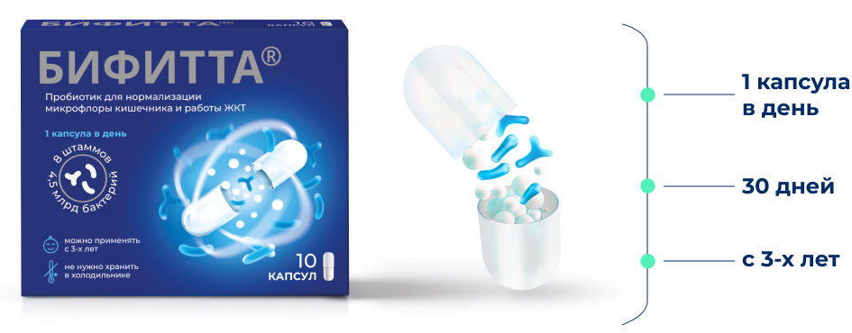 БИФИТТА® разрешена к применению детям с 3-х лет. Капсулу можно давать целиком